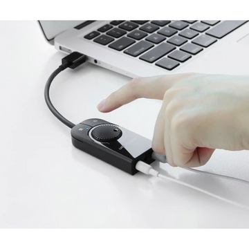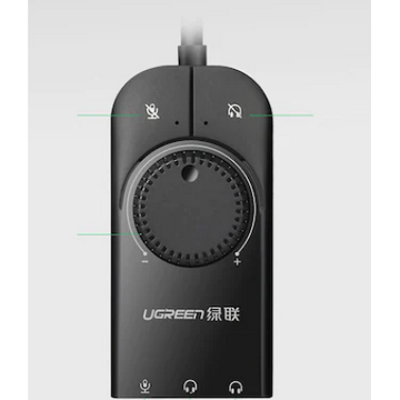 Prima pagină Laptop, Destkop, IT, Birotică Placa de sunet ADAPTOR audio Ugreen, “CM129″ convertor stereo USB(T) la 2 x Jack 3.5″ sound si 1 x 3.5” mic, control volum si buton mute sound si mic, lungime cablu 15 cm, negru