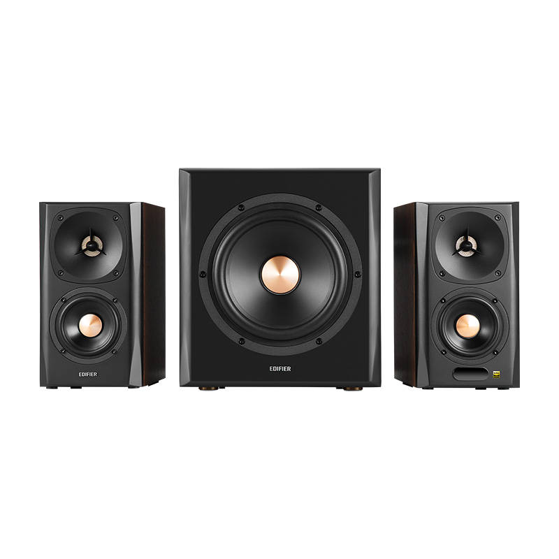 Majoritatea sistemelor 2.1 includ boxe satelit mici, compensând sunetul redus al acestora cu un subwoofer. Cu S350DB, vei beneficia atât de un subwoofer mare, cât și de boxe complet funcționale. Conectează sursa de redare prin Bluetooth, RCA, optic, coaxial sau AUX la boxe și bucură-te de sunetul excelent. Bluetooth-ul suportă aptX, iar intrarea digitală acceptă o rată de eșantionare de 24bit/48kHz.
