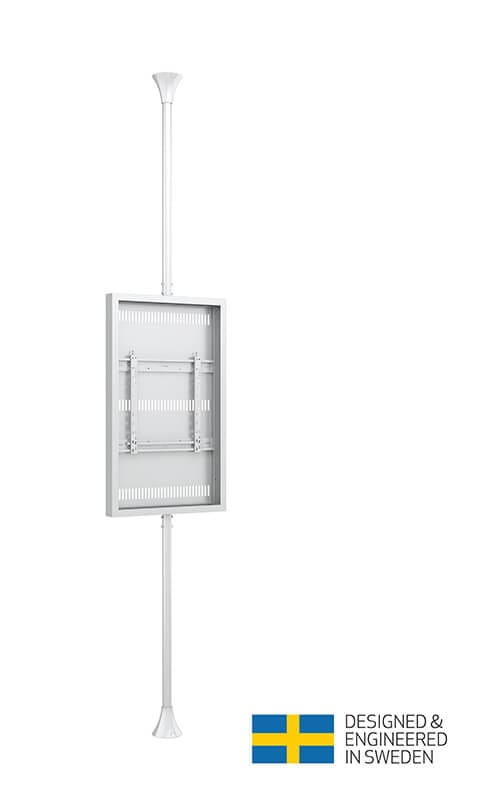 M Pro Series Enclosure 50" Floor to Ceiling Medium – Suport de podea până la tavan cu carcasă pentru ecran, din oțel, lungime 3m, 1 ecran, o singură parte, brațe fixe, VESA max 600×400 – dimensiunea ecranului: 50" – alb