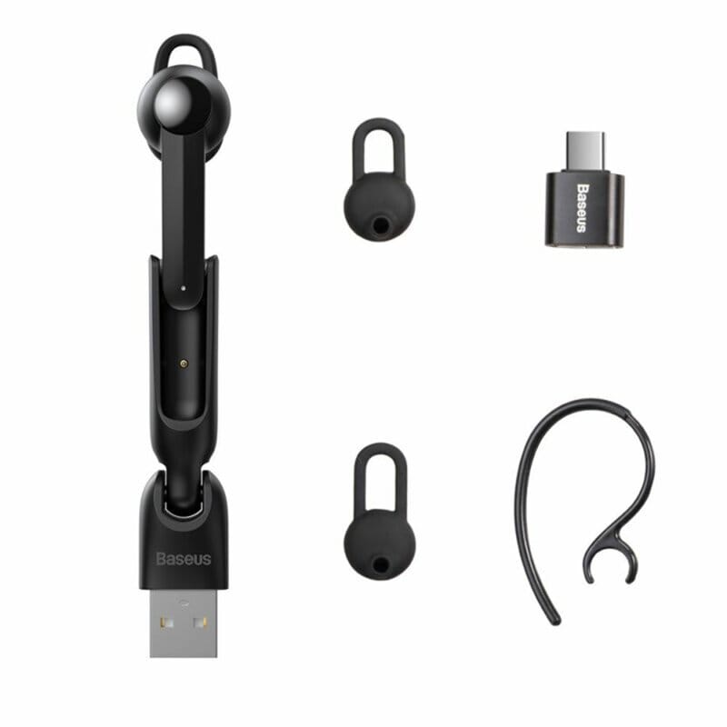 - Baseus A05 Wireless Earphone Headset este o casca bluetooth mini cu statie de incarcare USB.