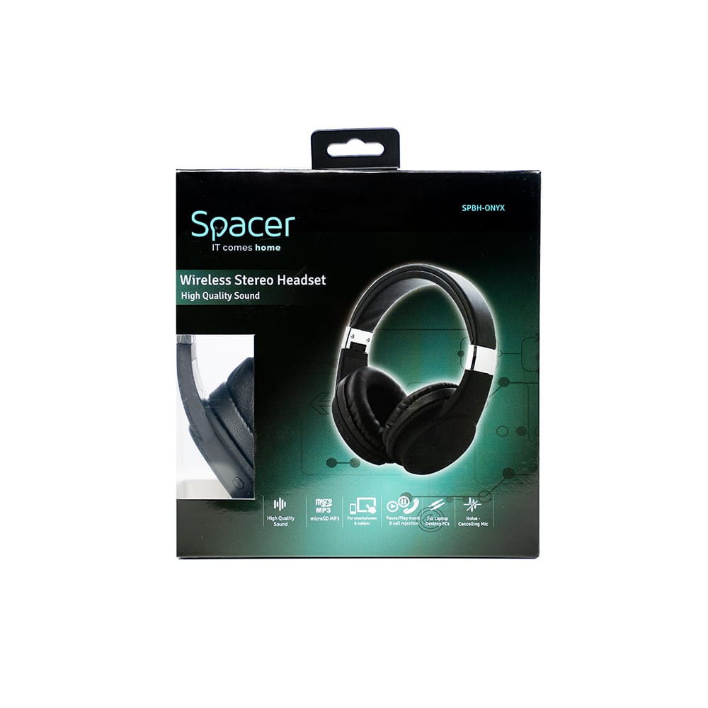 Muzica joaca un rol esential in viata noastra, ne insoteste permanent, fie ca ne ajuta sa trecem peste situatii dificile sau sa traim din plin momentele frumoase. Castile Spacer ONYX, compatibile cu orice dispozitiv cu bluetooth incorporat, cu timp de functionare de pana la 8 ore vor fi alaturi de tine pe parcursul zilei. Gandite pentru utilizare frecventa si intensa, sunt usoare, cu pernute moi, de mari dimensiuni si banda de adaptare captusita, reglabila si pliabila. Se potrivesc perfect in jurul urechilor, putand fi purtate ore in sir fara a simti disconfort.