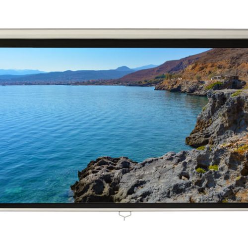 – ecranul de proiectie este prevazut cu un sistem de blocare auto-lock ceea ce permite rularea ecranului la orice inaltime dorita, ecranul putand fi folosit si ca ecran format 4:3 sau format 16:9