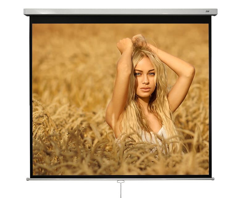 – ecranul de proiectie este prevazut cu un sistem de blocare auto-lock ceea ce permite rularea ecranului la orice inaltime dorita, ecranul putand fi folosit si ca ecran format 4:3 sau format 16:9