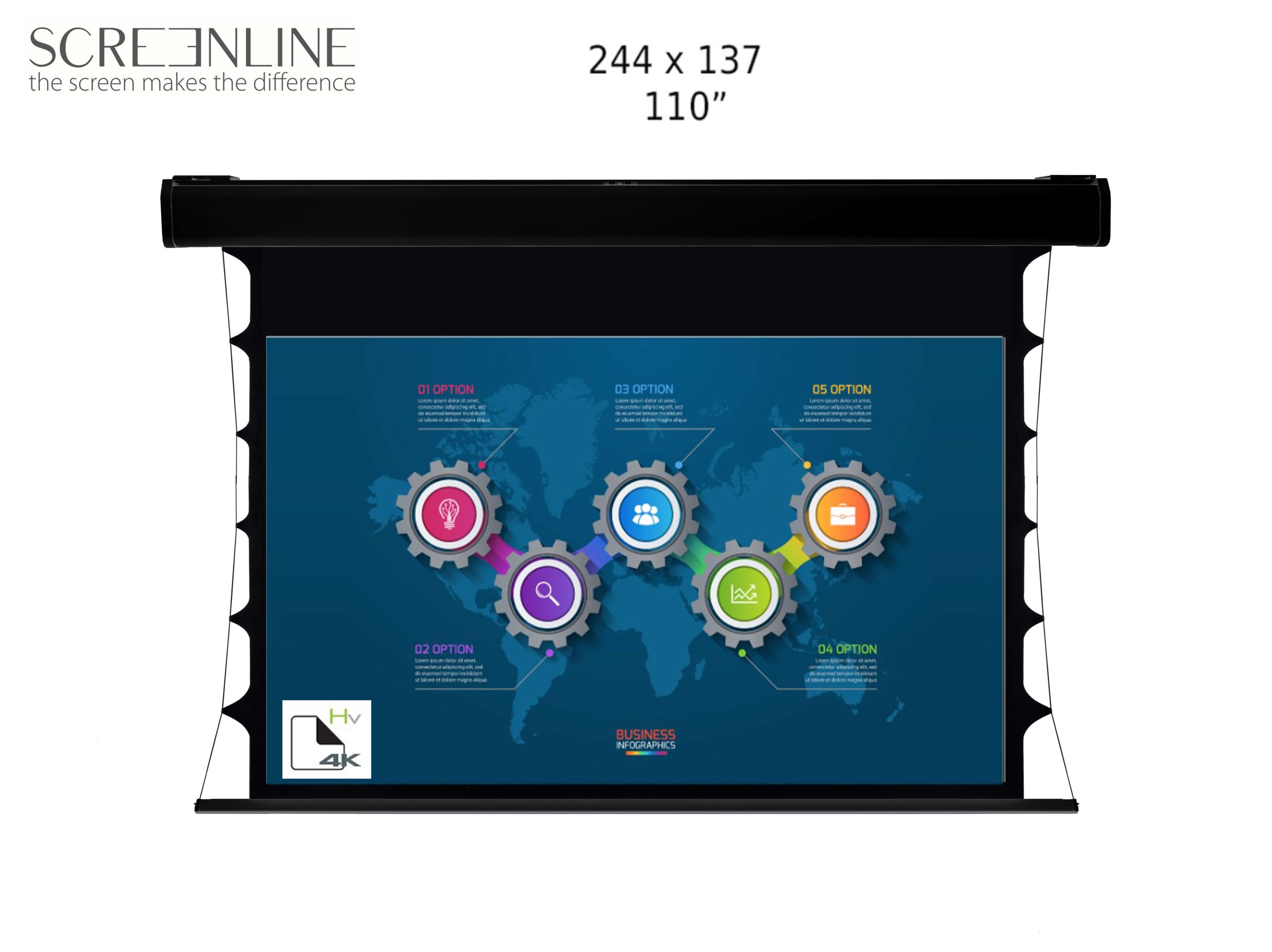 Ecran proiectie electric, perete/tavan, 300 x 169 cm, Blackmount, cu telecomanda, Format 16:9