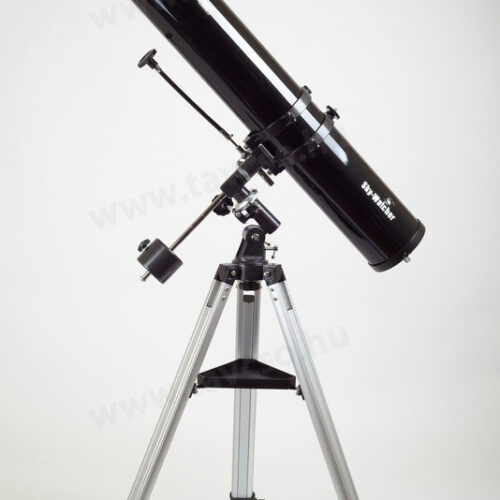 Telescop newtonian SkyWatcher Luna-114e 114/900 cu mecanism EQ1. Echipament: lunetă căutătoare 5×24, oculare Barium25 (36x) și Barium10 (90x), lentilă Barlow simplă