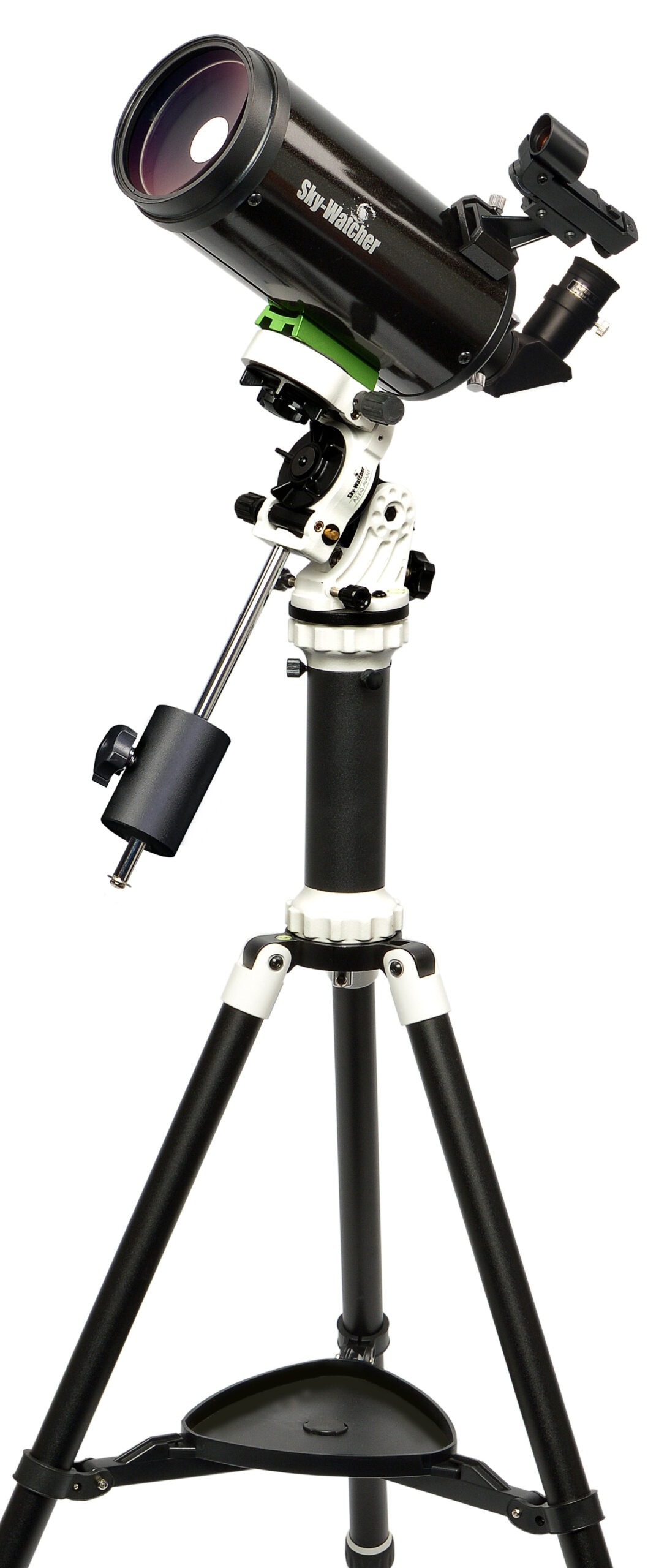 Mecanism SkyWatcher Skymax-102 Maksutov-Cassegrain Avant 102/1300, accesorii: indicator stelar, oglindă zenitală de 90 de grade, trepied StarAdventurer, oculare Barium25 (52x) și Barium10 (130x).