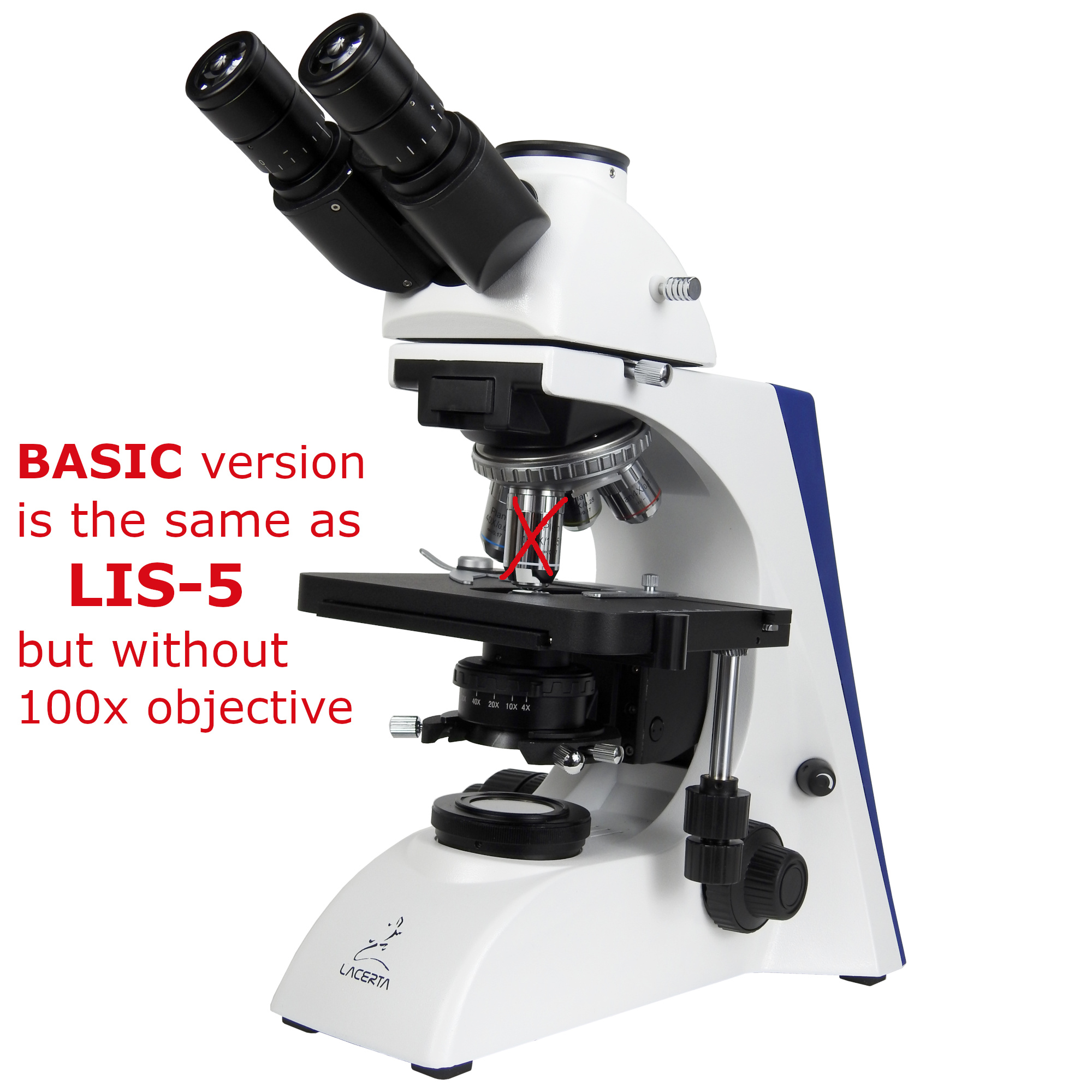 Microscopul Lacerta Infinity Series Typ „de bază” este dotat cu 3 obiective PLAN (4x, 10x, 40x), fototub și iluminare Full-Köhler. Un microscop de cercetare fundamentală de înaltă calitate, care poate fi extins cu nenumărate accesorii.