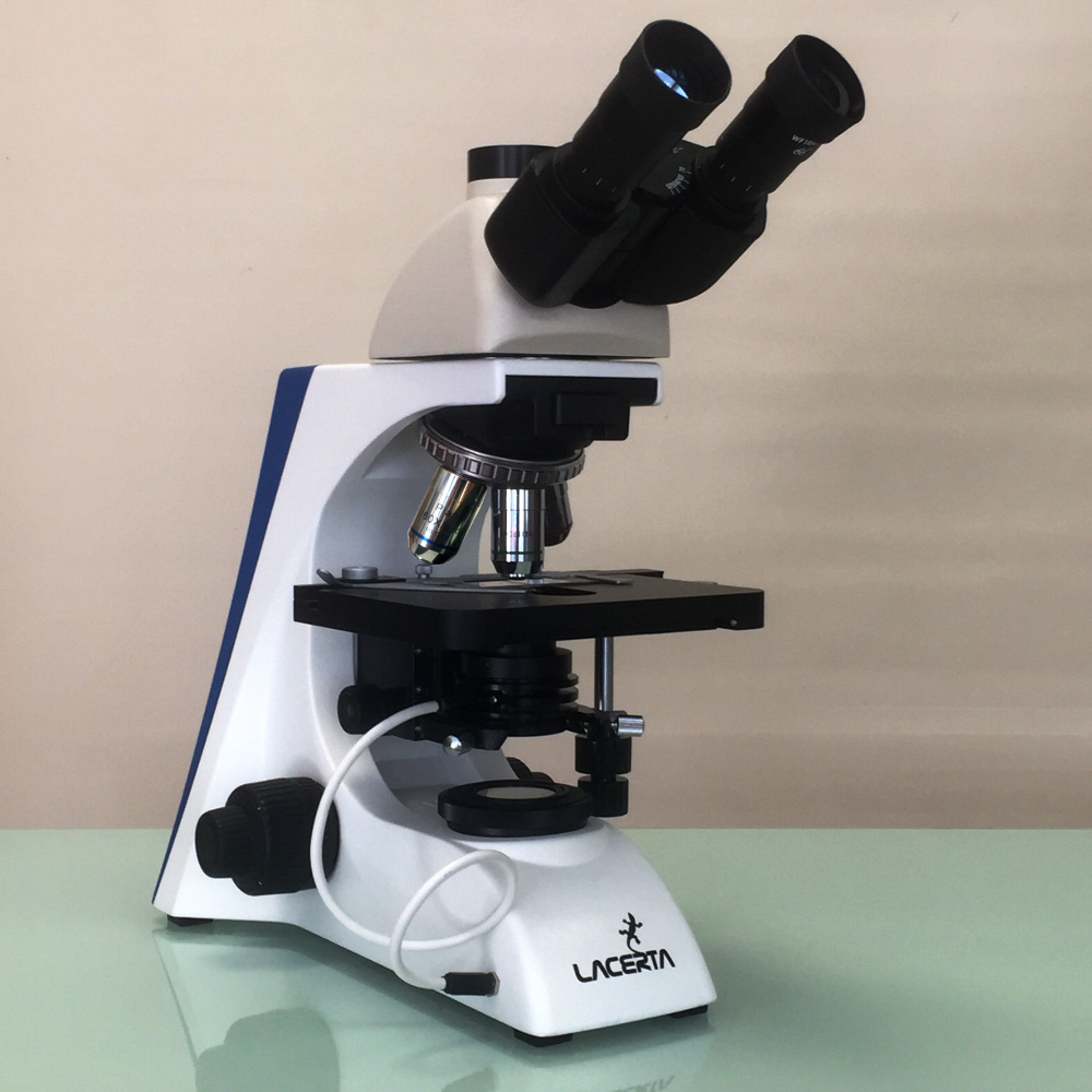 Microscop pentru examinarea sângelui viu în câmp întunecat cu 4 obiective (4x, 10x, 40x, Infinity AchroPlan cu iris 100x) și mărire de 1000x