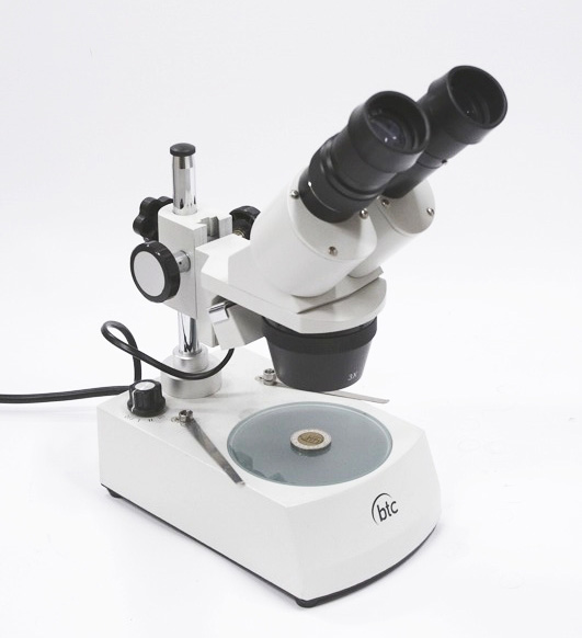 Microscop stereo STM3c cu mărire variabilă 10x/30x sau 20x/40x (selectabilă), cu iluminare LED superioară și inferioară.