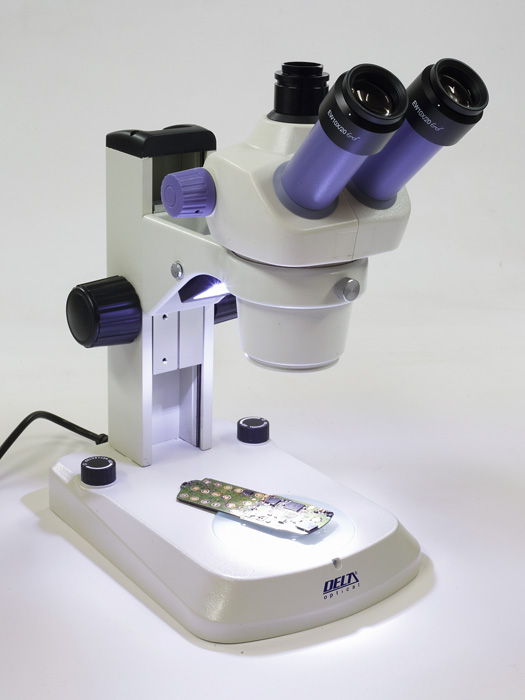 Microscop stereo binocular Delta SZ-450-B cu zoom profesional (1x-4.5x) și iluminare de jos în sus