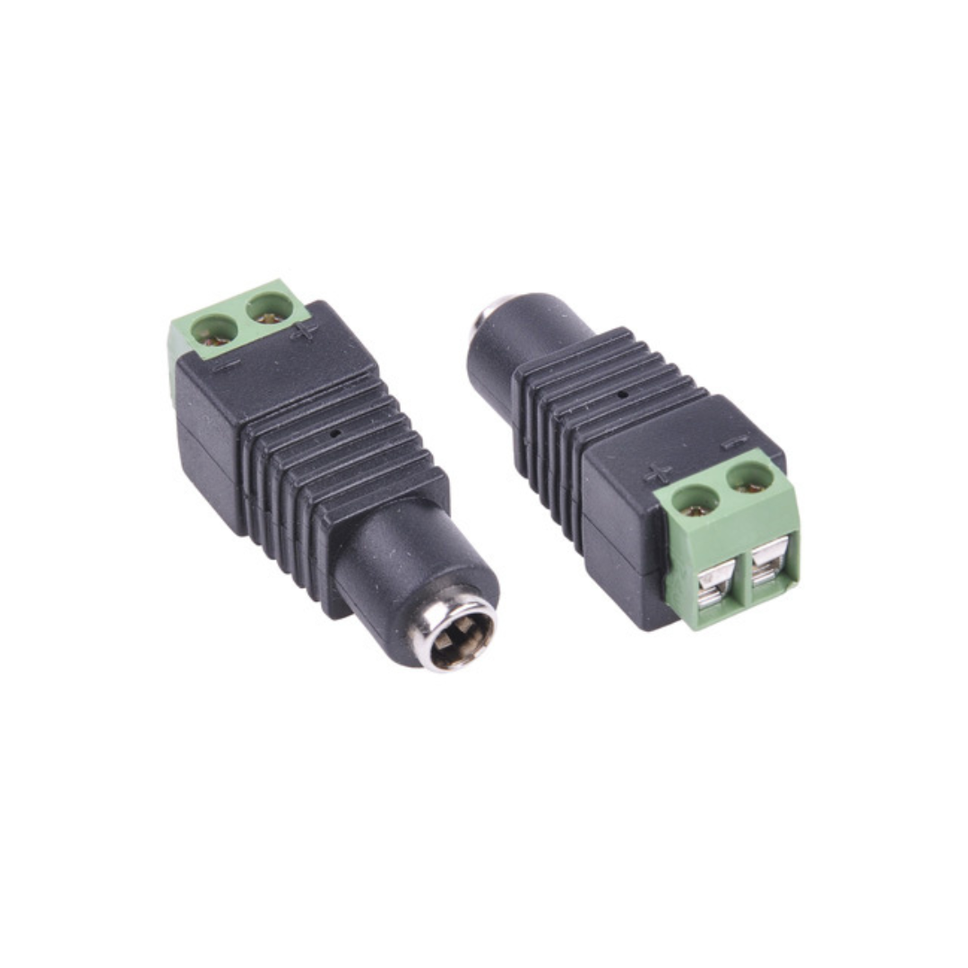 Mufă de alimentare DC de tip mamă pentru camere de supraveghere, cu conector standard 2.1/5.5 mm. Asigură o conexiune fiabilă și stabilă, fiind ușor de montat datorită sistemului simplu de prindere. Compatibilă cu o gamă largă de dispozitive, este fabricată din materiale durabile pentru utilizare îndelungată.