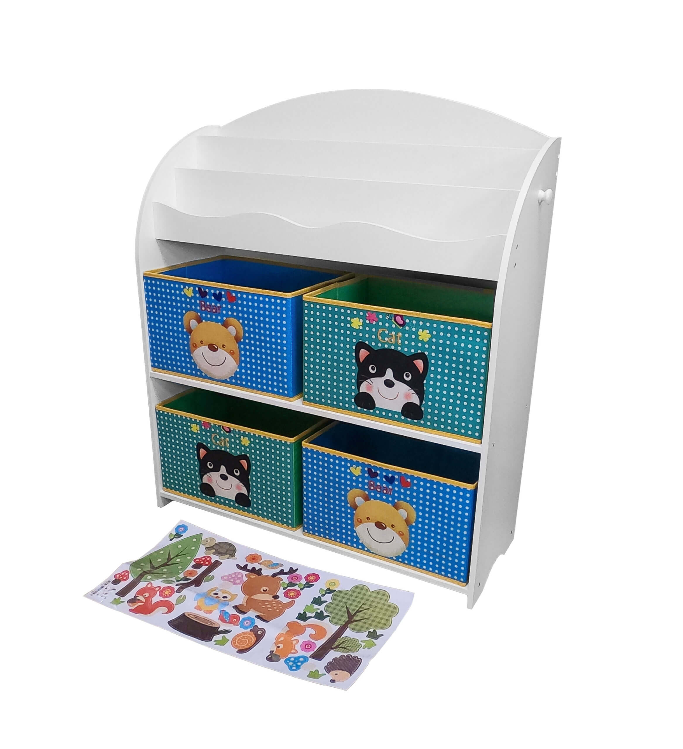 Organizator jucării cu 3 rafturi pentru cărți și 4 cutii de depozitare ErgoK Happy