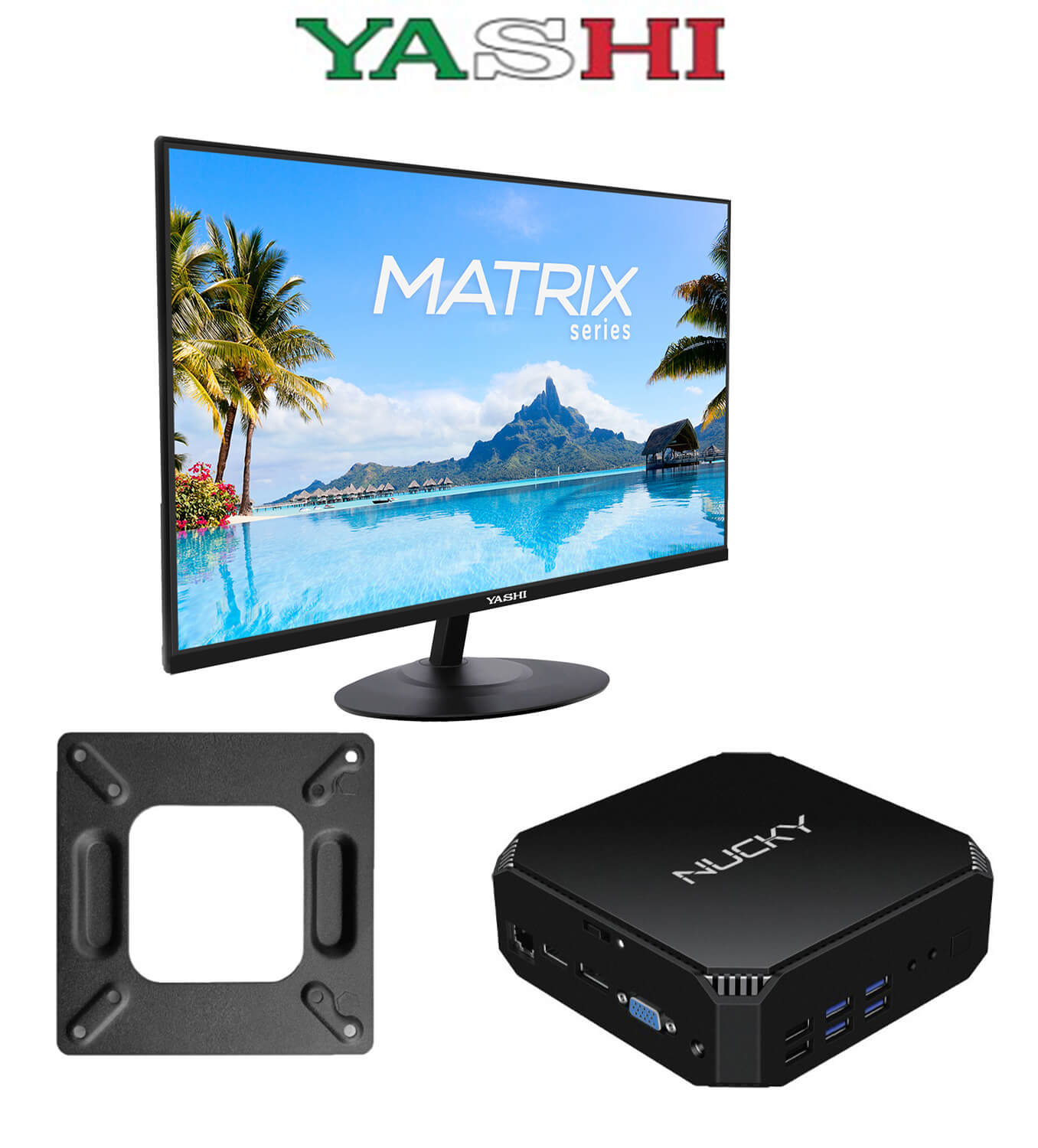 Prima pagină Mini PC Pachet PC cu Monitor Matrix Yashi YZ-2467, Desktop Mini Pc Yashi Nucky2 NY-0270 si suport VESA