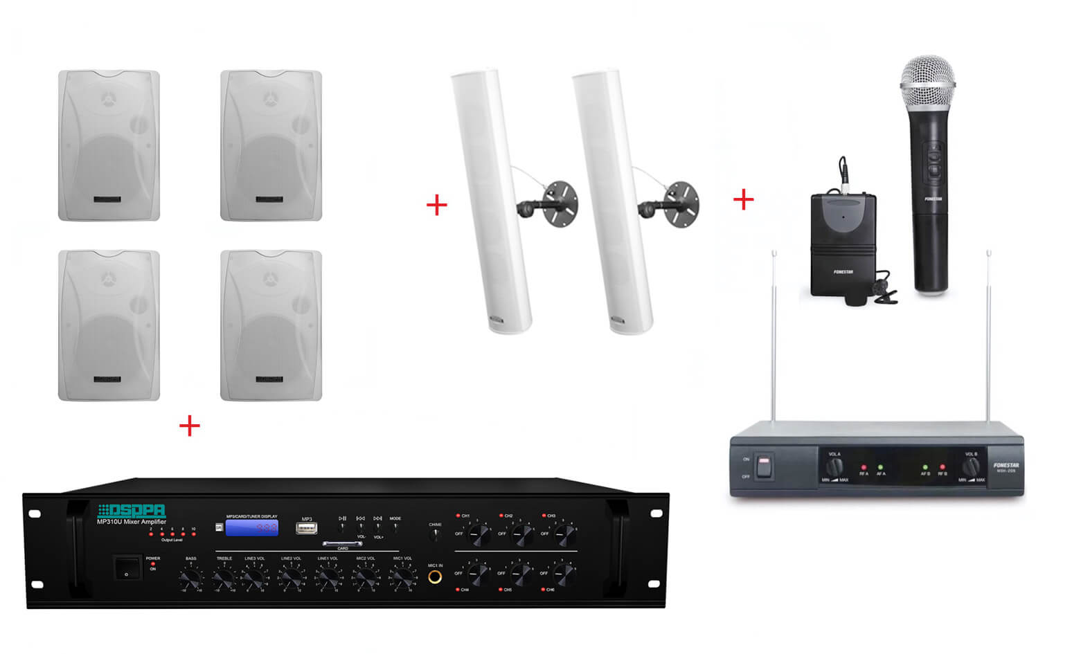 Pachet Sonorizare 120W de perete, FM+USB+Bluetooth, DSPPA MP212U+6xDSP8062
