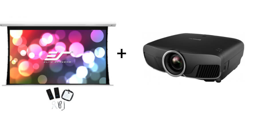 Pachet videoproiectie cu Videoproiector EPSON EH-TW9400, Full HD cu 4K upscaling, 2600 lumeni, contrast 1.200.000:1 si Ecran proiectie electric profesional, perete/tavan, 299 x 168 cm, Tensionat, EliteScreens Saker SKT135XHW-E6, 16:9