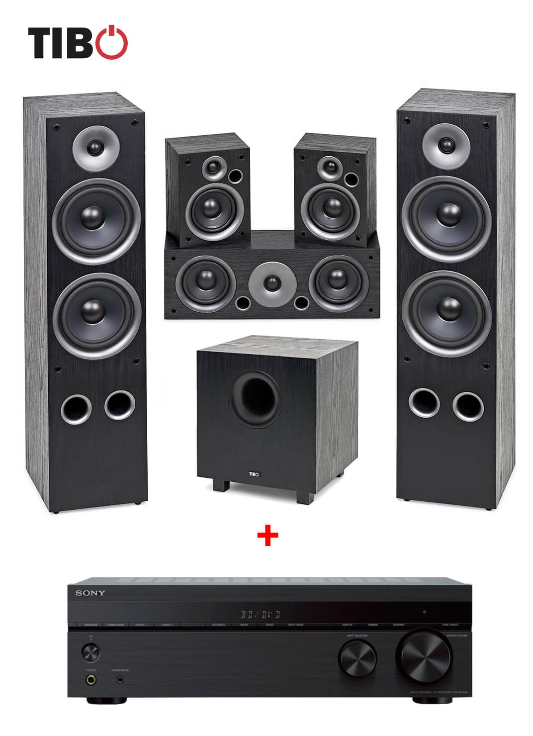 Sistem Home Cinema 5.1 cu boxe TIBO Harmony 5 si Receiver Sony STR-DH590, 500W, Negru