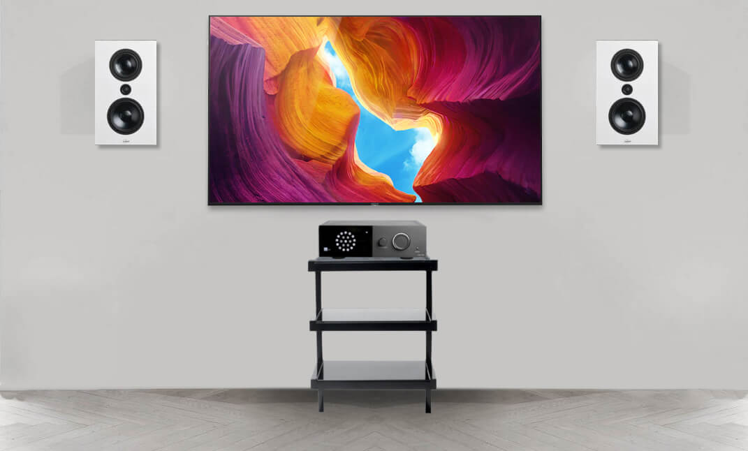 Sistem Stereo Lyngdorf cu amplif. TDAI-1120 + boxe de perete MH-2 + subwoofer BW-2