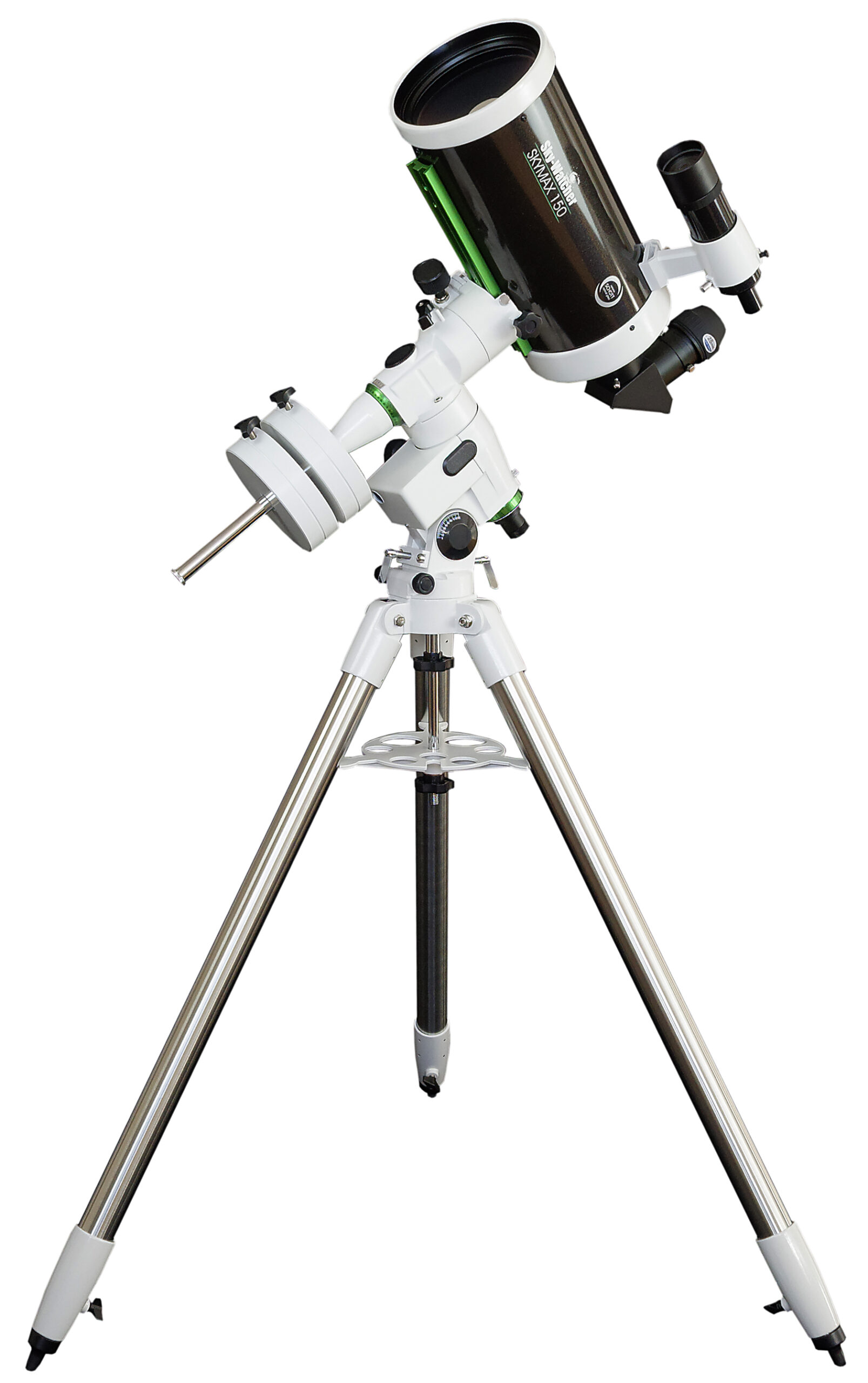 SkyWatcher Skymax-150 Maksutov-Cassegrain 150/1800 pe mecanism EQ5 (lună căutătoare 9×50, oglindă zenitală 2″, ocular APEX 28 (64x) 2″)