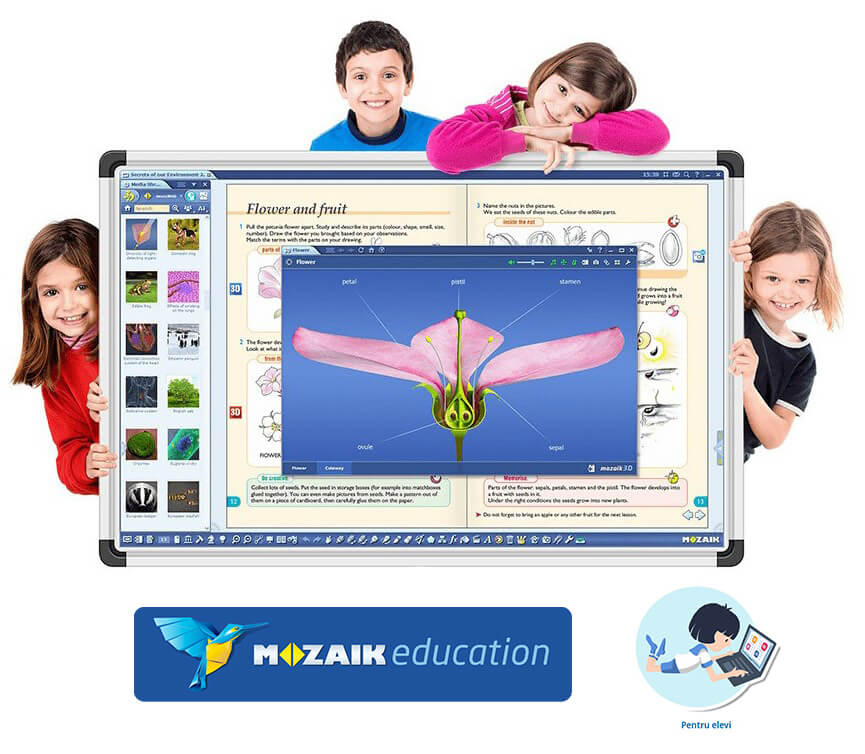 Puteți instala software-ul mozaBook Windows pe computerul vostru, puteți descărca aplicația mozaBook Android/iOS pe smartphone sau tabletă și puteți utiliza și platforma educațională mozaWeb. Haideți să vedem ce conținuturi veți avea la dispoziție: