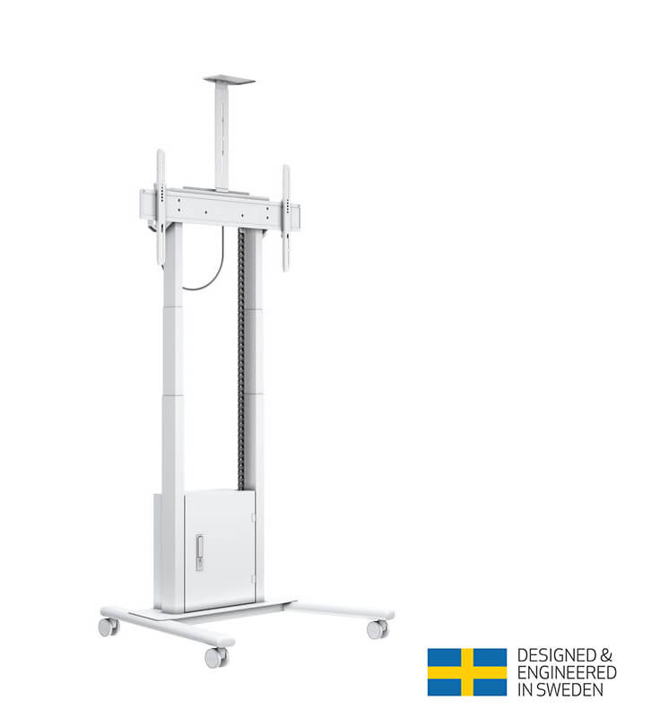 Acest suport mobil motorizat, proiectat curat, dar robust și stabil, previne tremurarea ecranului tactil atunci când este utilizat. Utilizarea unui motor dublu cu putere mare și a roților de înaltă performanță fabricate în Germania facilitează deplasarea ecranului. Ajustarea electrică a înălțimii se face de asemenea ușor pentru a fi mereu la cerintele publicului