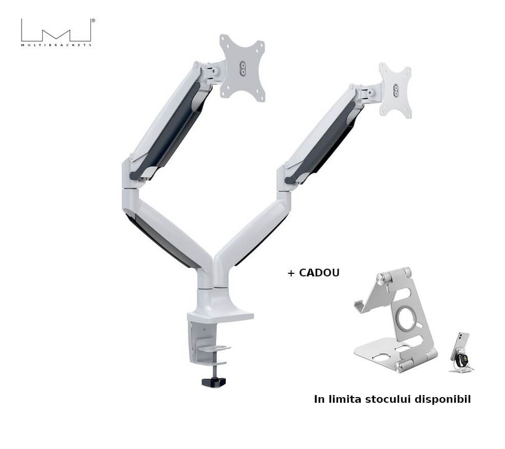 M Deskmount Gas Spring Dual White – Kit de montare ( braț de montare ecran dublu ) pentru ecran LCD – alb – dimensiuni ecran: 15" – 27" – montare pe masă