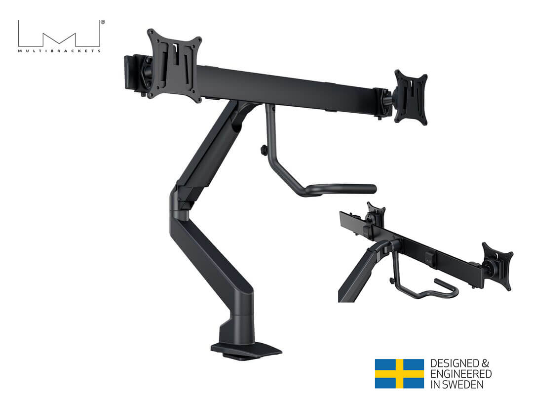 M VESA Gas Lift Arm w. Duo Crossbar 2 Black – Kit de montare (braț articulat, suport cu clemă de birou) pentru 2 x afișaj LCD – aluminiu – dimensiuni ecran: 15" – 28" – negru