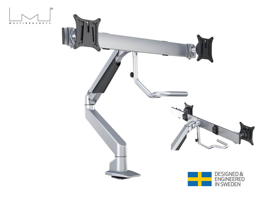 M VESA Gas Lift Arm w. Duo Crossbar 2 Black – Kit de montare (braț articulat, suport cu clemă de birou) pentru 2 x afișaj LCD – aluminiu – dimensiuni ecran: 15" – 28" – argintiu