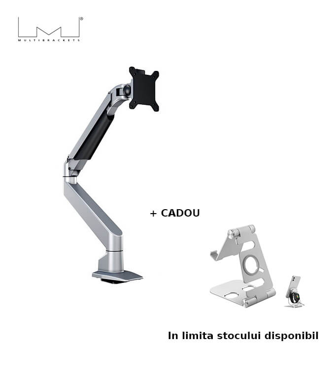 Suport Gas Lift brat flexibil M VESA se potriveste cu birouri standard (max 50mm) sau poate fi instalat printr-o tehnica cu gauri.