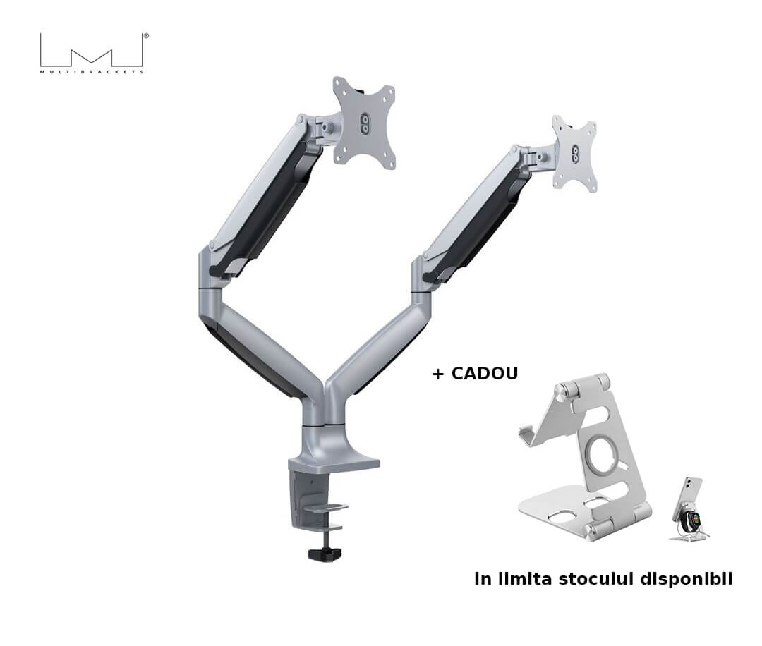 Suport monitor Multibrackets Spring Dublu – Kit de montare pentru doua monitoare – argintiu – dimensiunea ecranului: 15''-27'' – suport masa.