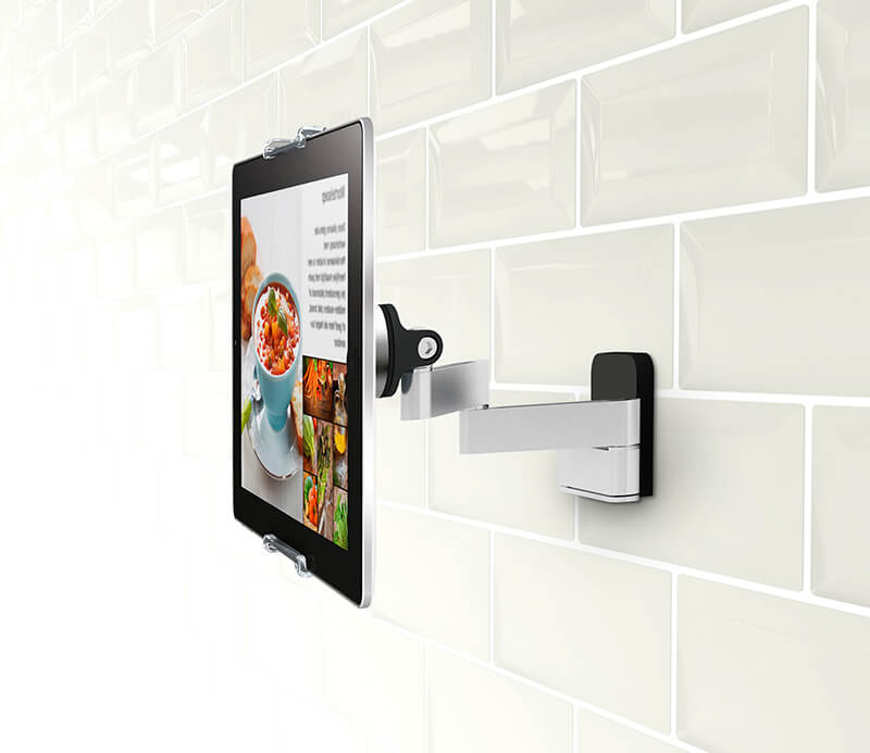 La Vogel's, intotdeuna ne place sa folosim tableta in bucatarie atunci cand gatim. Pentru un confort maxim, designerii nostri si-au folosit experienta in crearea unui suport de tableta rezistent si flexibil pentru a fixa si securiza tabletele pe perete. Vei economisi in spatiul tau de lucru si iti vei tine tableta departe de murdarie.