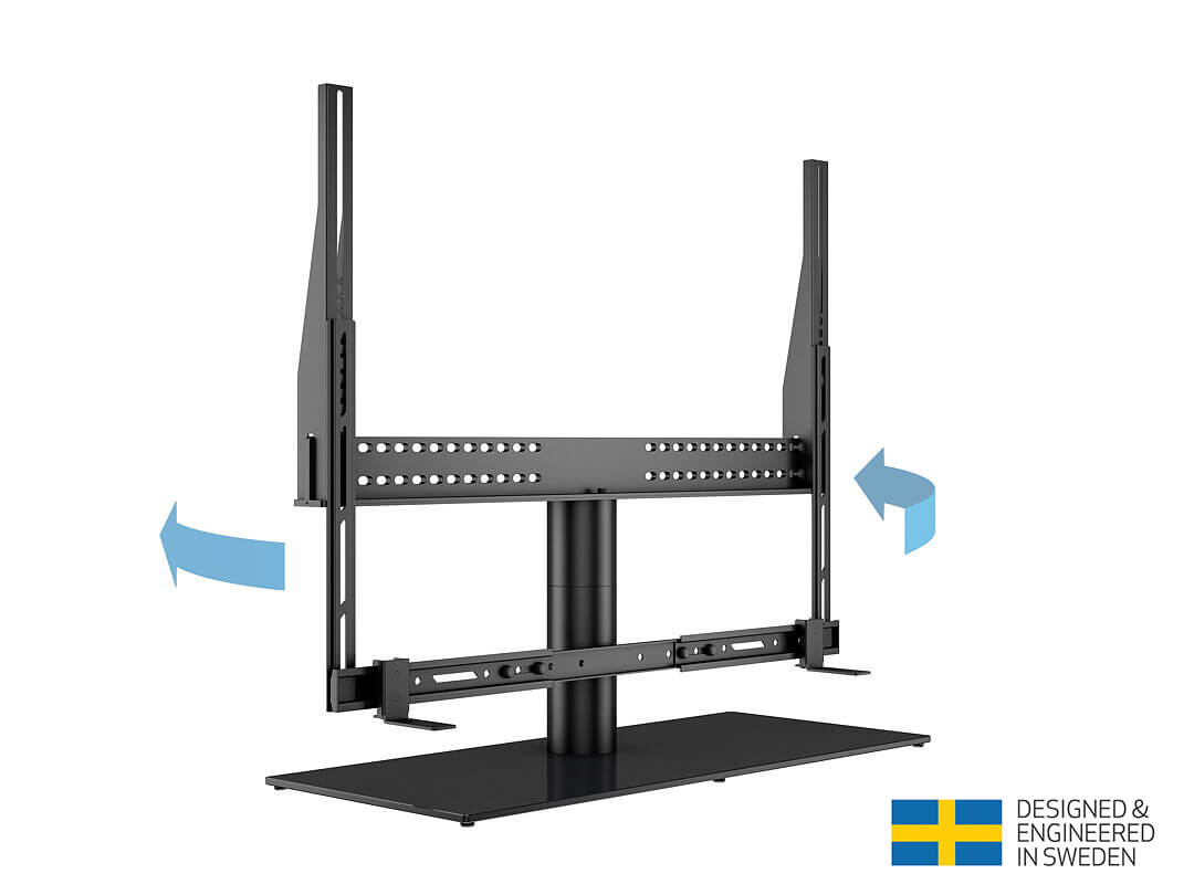 Multibrackets- Noul M VESA Tablestand Turn w. Soundbar, Max 65" oferă soluții de montare sigure și ușoare pentru televizoarele cu greutatea de până la 40 kg și MAX VESA 800×400. M VESA Tablestand Turn cu Soundbar, Max 65" este soluția perfectă pentru a obține un suport de masă proiectat de înaltă calitate pentru televizorul dvs.