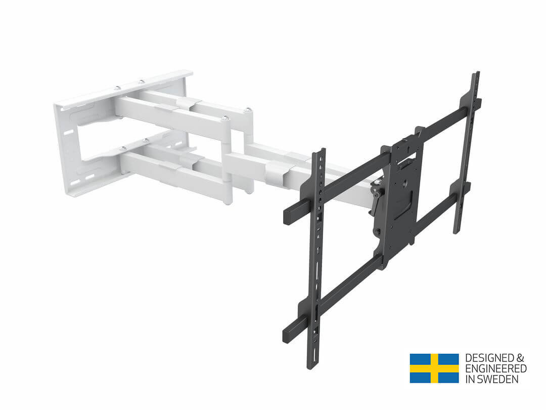 Brațul M Universal Long Reach 910 mm HD, Dual se potrivește atât pentru instalațiile casnice, cât și pentru cele comerciale. Bucurați-vă de o imagine grozavă de oriunde într-o cameră. Înclinați, rotiți, extindeți și nivelați televizorul fără a fi nevoie de unelte. Cablurile inestetice rămân ascunse, iar asamblarea aproape fără instrumente asigură o instalare rapidă și ușoară. Televizorul poate aluneca dintr-o parte în alta pentru o poziționare perfectă pe perete.