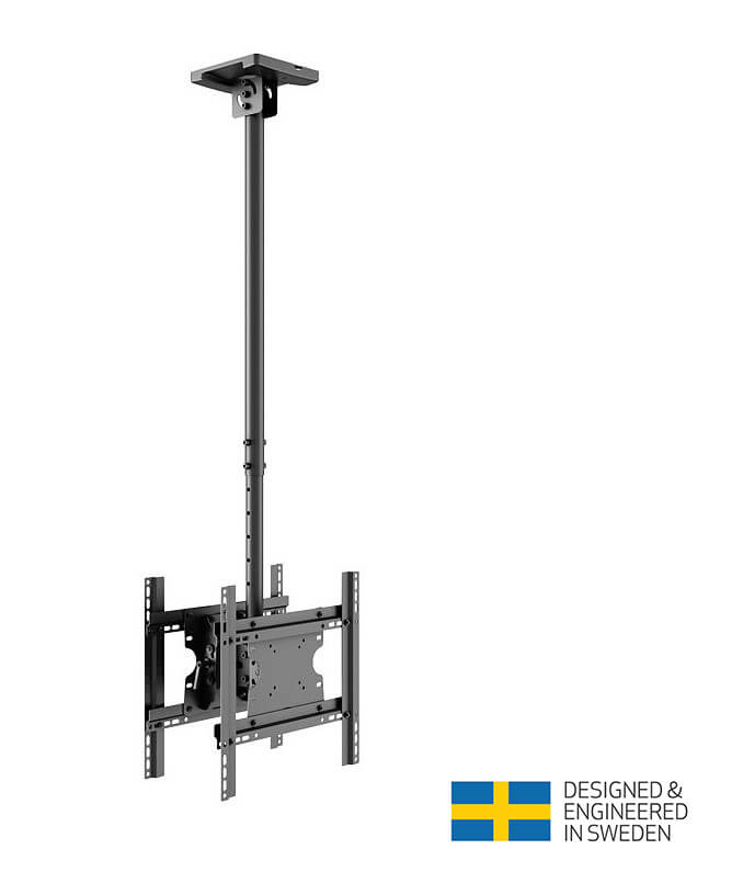 Suportul de tavan dublu spate în spate M permite vizualizarea din locatii multiple a ecranelor plate de dimensiune medie sau a afisajelor digitale. Aceasta solutie este perfecta pentru instalare publica în locatii precum magazine, aeroporturi, spitale sau oriunde este nevoie de unghiuri de vizionare sigure, stabile si perfecte din pozitii multiple.