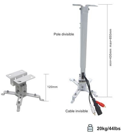 Suport videoproiector poate fi folosit si cu tija reglabila din dotare sau fara. In caz ca nu folositi tija reglabila, videoproiectorul va avea o inaltime de 12 cm de la tavan.