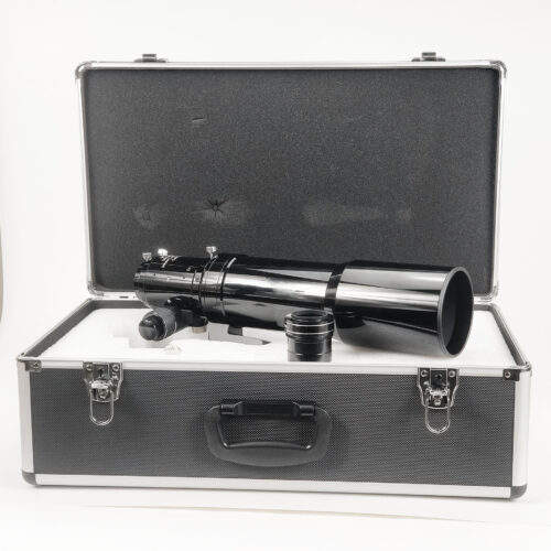 SkyWatcher ESPRIT Triplet-APO 120/840, cu extensie de 3″, corector de plan de imagine full-frame, ocular Apex de 28 mm, căutător 9×50, oglindă zenitală dielectrică de 2″.