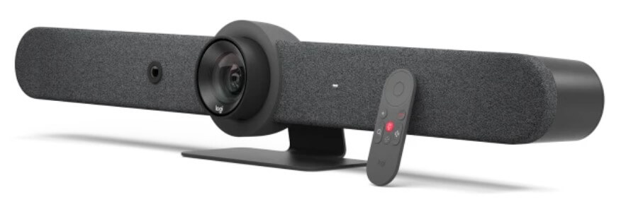 Componente încorporate: 6 microfoane beamforming, cameră PTZ, 3 difuzoare, AI Viewfinder, sistem de gestionare și reținere a cablurilor, suport de masă, platformă Logitech CollabOS